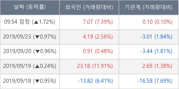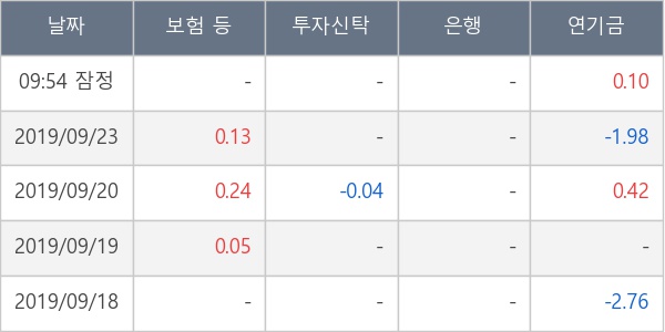 [표] 주요 기관별 순매매량 (단위 만주)