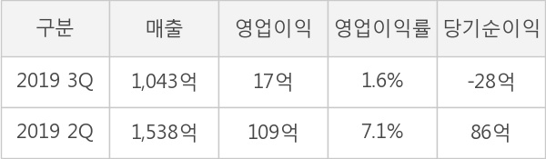 ◆ 실적발표, 영업이익 17억원 전분기 대비 -84.9% 감소... 매출액 -32.2% 감소