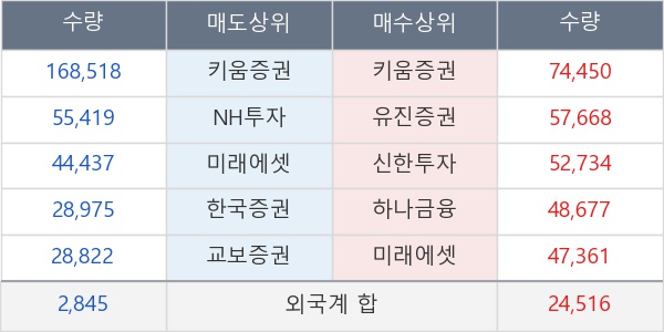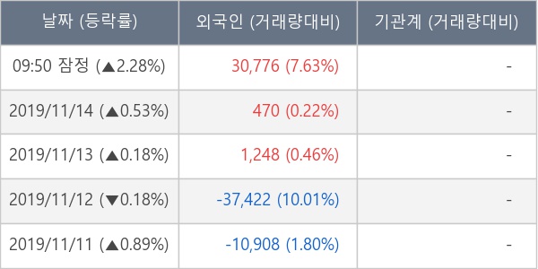 [표] 외국인ㆍ기관 순매매량 (단위 주)