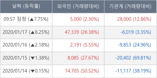 [표] 외국인ㆍ기관 순매매량 (단위 주)