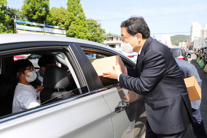 [창원=뉴스핌] 남경문 기자 = 창원시는 5일 제99회 어린이날을 맞아 의창구 청사 앞에서 드라이브 스루 '온가족 체험박스 전달 행사'를 개최했다고 밝혔다.