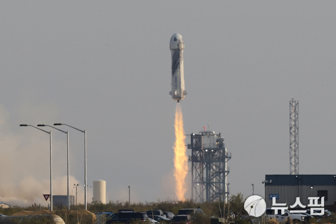 [사진]베이조스 태우고 발사되는 우주 여행 로켓