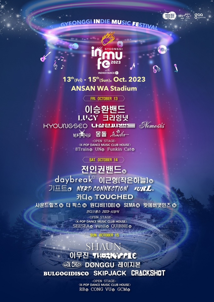 [안산=뉴스핌] 박승봉 기자 = 경기 안산시는 오는 10월 13일부터 15일까지 사흘간 안산 와∼스타디움에서 열리는 인디뮤지션 최대 축제 '2023 경기인디뮤직페스티벌'의 최종 라인업이 공개됐다고 25일 밝혔다.