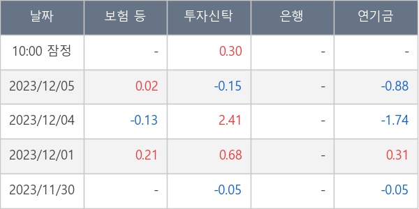 ※ 사모펀드 등 일부 기관의 순매매량은 표시되지 않음