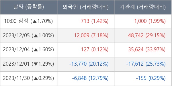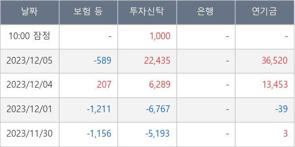 [표] 주요 기관별 순매매량 (단위 주)
