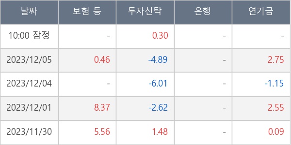 [표] 주요 기관별 순매매량 (단위 만주)