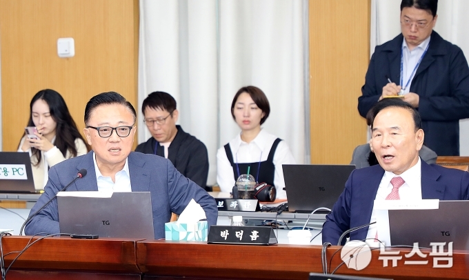 [대전=뉴스핌] 오종원 기자 = 24일 오전 대전시청에서 열린 국회 행정안전위원회 대전시 국정감사에서 12·3 계엄 당시 이장우 대전시장의 동선을 묻는 더불어민주당 국회의원들의 잇따른 질문에 국민의힘 고동진(서울 강남병) 의원과 박덕흠(충북 보은, 옥천, 영동, 괴산) 국회의원이 "유정복 인천시장에게는 계엄 시 청사에 갔다며 지적하고선 이 시장에겐 청사에 오지 않았다고 비판하는 것이냐"며 "국감위원들은 일관적으로 지적해야 한다"며 맞대응했다. jongwon3454@newspim.com