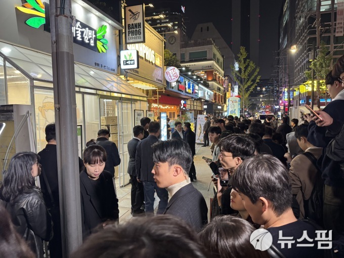 | [서울=뉴스핌] 김정인 기자 = 젠슨 황 엔비디아 CEO와 이재용 삼성전자 회장, 정의선 현대차그룹 회장이 회동하는 서울 삼성동 깐부치킨 앞에 취재진들로 북적이고 있다. 2025.10.30 kji01@newspim.com |