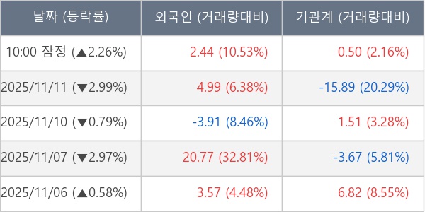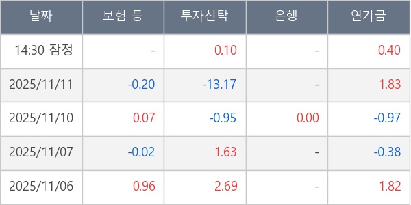 ※ 사모펀드 등 일부 기관의 순매매량은 표시되지 않음