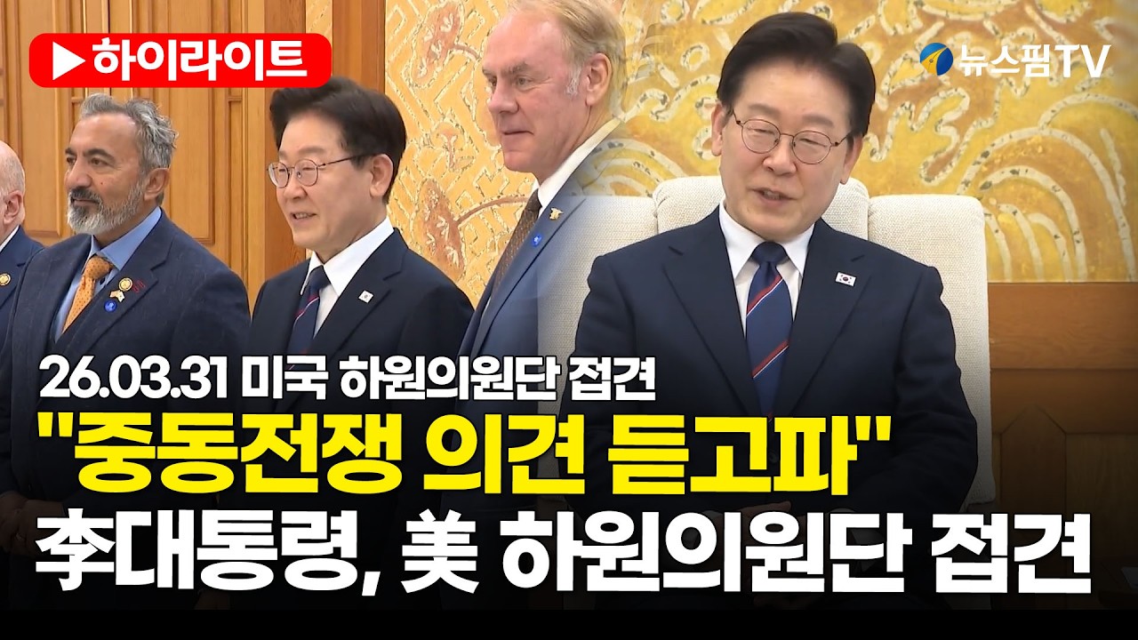 [스팟Live] 美 하원의원단 접견한 李대통령 "중동전쟁 의견 듣고파" | 26.03.31 미국 하원의원단 접견