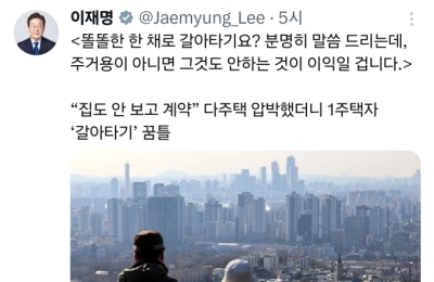 다주택자 압박에도 집값 하락 제한적…"규제만으론 안정화 한계" [서울=뉴스핌] 최현민 기자 = 이재명 대통령이 다주택자를 향한 강도 높은 메시지를 연일 내놓으면서, 정부가 보유 주택 매각을 유도하기 위한 압박 기조를 본격화하고 있다. 양도소득세 중과 유예 종료 시점을 '마지막 탈출 기회'로 규정하고 재연