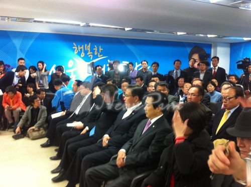 [뉴스핌=최주은 기자] KBS, MBC, SBS 방송 3사는 26일 오후 8시 ‘10 · 26 서울특별시장 보궐선거’의 출구 조사 결과, 무소속 박원순 후보가 54.4%로 45.2%의 한나라당 나경원 후보에 9.2%포인트 앞서는 것으로 나타났다고 밝혔다.