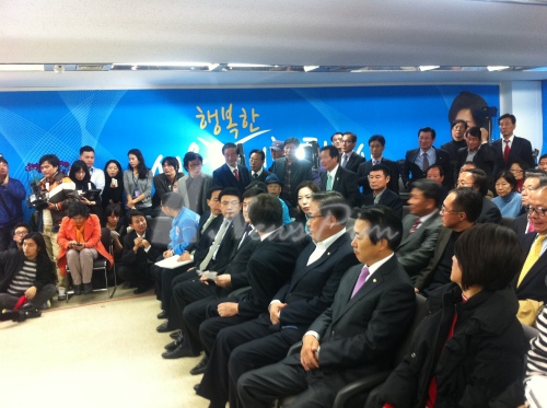 대형 스크린 앞줄에 앉았던 박진, 강승규, 이종구, 안형환, 정옥임, 나성린, 이두아, 김성동 의원 등은 모니터를 뚫어져라 바라본뒤 이윽고 자리를 떴다.