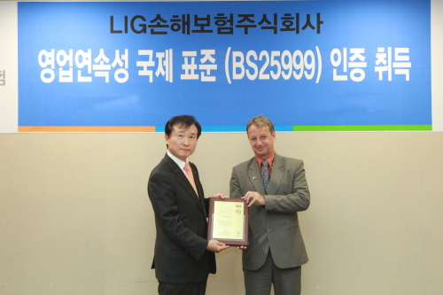LIG손해보험(회장 구자준)은 26일 세계적인 인증 전문기관인 SGS코리아로부터 BCP에 대한 국제표준인 영국표준협회의 BS25999 인증을 취득했다고 밝혔다.