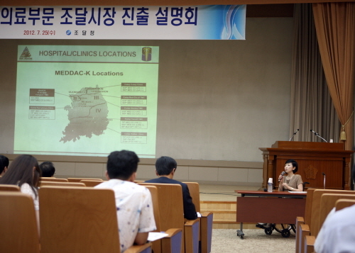 이번 설명회는 주한미군 의료계약처 계약담당관을 초청, 주한미군 의료부문 조달시장의 현황과 우리 기업의 참여를 위한 업체등록 방법, 입찰 참여 절차 등을 안내하기 위해 마련됐다.