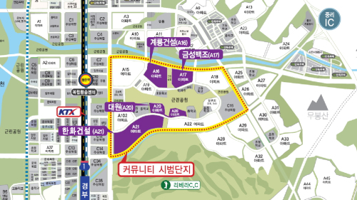 커뮤니티 시범단지에선 KTX(한국형고속철도) 복합환승센터와 상업·업무·편의시설이 들어서는 광역비즈니스 콤플렉스를 걸어서 이용할 수 있다. 중앙 근린공원이 시범단지를 둘러싸고 있어 환경도 쾌적한 편이다.