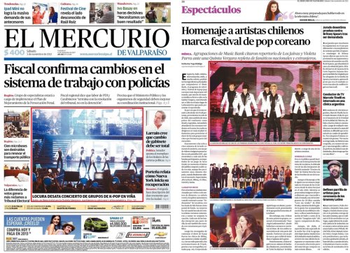 [뉴스핌=이슈팀] 아이돌 그룹 엠블랙이 칠레 신문 1면을 장식했다.