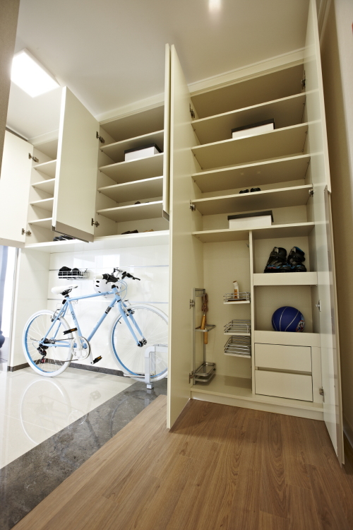 SK건설이 동탄신도시 화성시 반월지구에 분양하는 '신동탄 SK VIEW Park'에는 자전거가 넉넉히 들어갈 수 있는 현관 수납장이 설치돼 이목을 끈다.