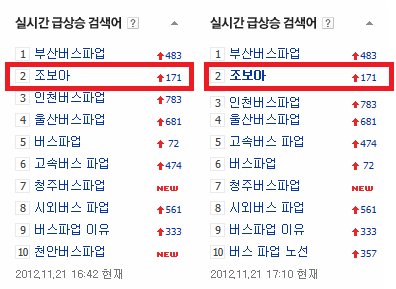 조보아 [사진=포털사이트 실시간 인기 검색어 캡쳐] |