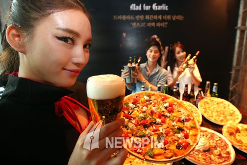 [뉴스핌=김학선 기자] 이탈리안 와인 레스토랑 매드 포 갈릭이 13일 오전 서울 종로구 매드 포 갈릭 광화문점에서 드라큘라도 반한 화끈하게 더위 날리는 '렛츠고! 피맥(피자&맥주) 파티!!' 프로모션을 알리고 있다.