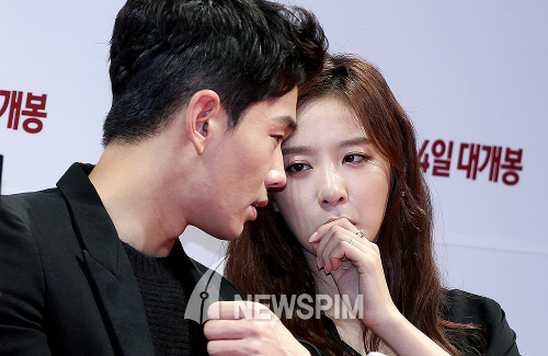 [뉴스핌=강소연 기자] 배우 온주완과 이청아(왼쪽부터)가 15일 오전 서울 강남구 신사동 압구정CGV에서 열린 영화 '더 파이브' 제작보고회 현장에 참석해 이야기를 나누고 있다. 이청아는 제작보고회에서 은주완과 귀엣말을 나누는 등 친밀한 모습이 눈길을 끌었다.