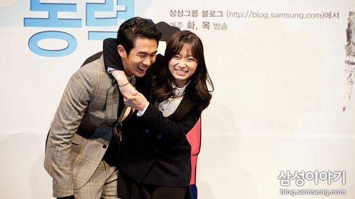 임슬옹과 김슬기는 8일 서울 서초동 삼성전자 사옥에서 열린 SNS 드라마 '무한동력' 미디어데이 행사에 참석해 끈끈한 호흡을 보여줬다. 이들은 나란히 서서 다정함을 과시하는가 하면, 헤드락을 걸며 코믹한 포즈를 지어보이기도 했다.