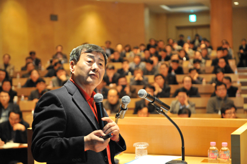 | 김준기 동부그룹 회장이 지난달 열린 신년 임원 워크샵에서 `내부 역량 강화를 통한 위기극복`을 주문하고 있다.(사진 = 동부 제공) |