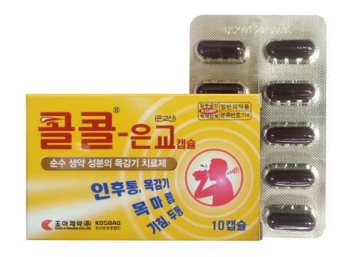 콜콜은교캡슐은 한방의 은교산 처방을 바탕으로 개발된 목감기약으로 주성분은 금은화, 연교, 길경, 감초, 박하 등이다.