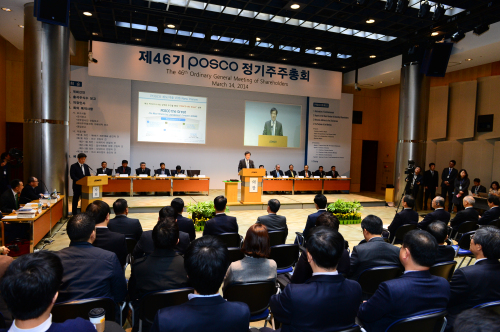 포스코는 14일 서울 강남구 대치동 포스코센터에서 제46기 주주총회를 열어 권오준 차기 회장 내정자의 사내이사 선임안을 통과시켰다. 권 사내이사는 주총 직후 열리는 이사회에서 포스코 제8대 회장으로 선임됐다.