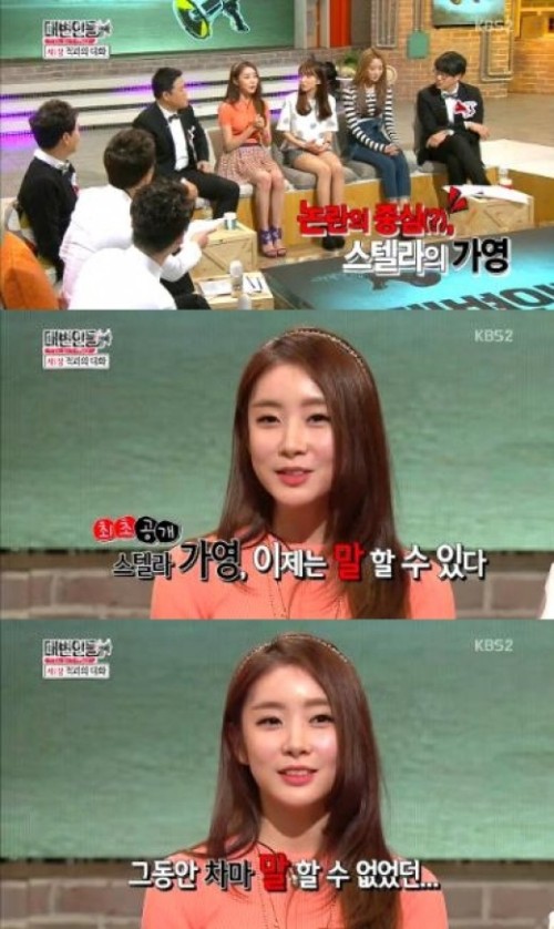 이날 가영의 출연에 최근 논란이 된 스텔라의 노출 의상에 관한 이야기가 나왔다. 걸그룸 멤버들이 모인 만큼 다양한 의견들이 오갔다.