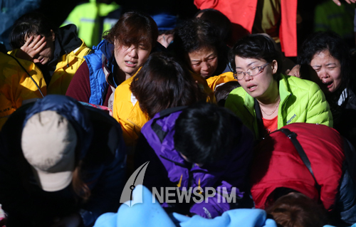 [뉴스핌=김학선 기자] 여객선 세월호 침몰 나흘째인 19일 새벽 진도 팽목항에서 단원고 실종자 어머니들이 '아이들을 구해달라'며 애원하고 있다.