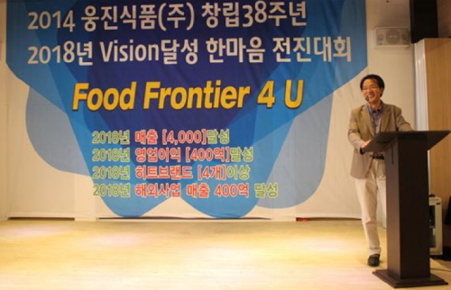 최승우 웅진식품 대표이사는 16일 창립 38주년을 맞아 '푸드 프론티어(Food Frontier) 4U' 선포식을 갖고 이 같이 밝혔다.