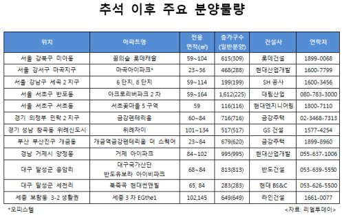 [뉴스핌=한태희 기자] 추석 이후 주택시장에 새 아파트가 쏟아진다.