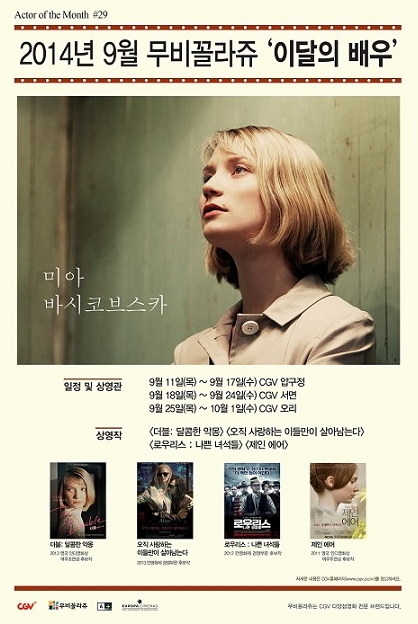 [뉴스핌=이연춘 기자] CGV 무비꼴라쥬가 9월 '이달의 배우' 로 할리우드의 떠오르는 신성 미아 바시코브스카를 선정하고, 이달 11일부터 다음달 1일까지 CGV압구정, 서면, 오리에서 그녀의 대표작 4편을 선보인다.