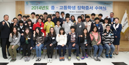 [뉴스핌=이연춘 기자] 대상그룹 공익법인 대상문화재단(이사장 임창욱)이 지난 8일 서울 신설동 대상(주) 본사에서 ‘2014년도 장학증서 수여식’을 갖고, 전국에서 선발된 중·고등학생 총 440명에게 장학증서를 수여했다.