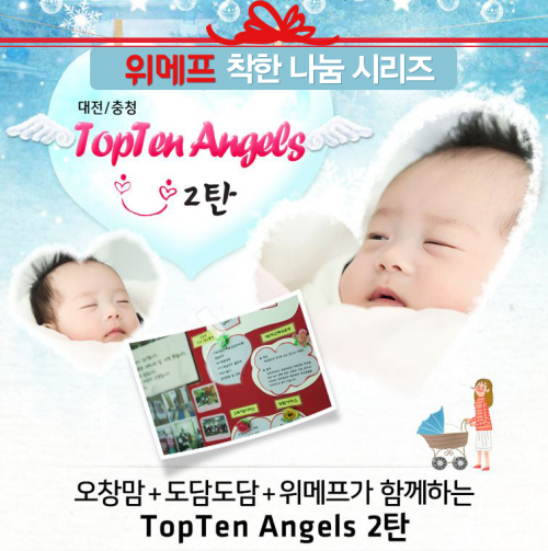 [뉴스핌=최주은 기자] 소셜커머스 위메프(대표 박은상)는 충청과 대전 지역 업체들과 제휴를 맺고 사랑 나눔 캠페인 ‘Top Ten Angels 2탄’을 진행한다고 9일 밝혔다.