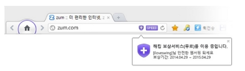 또한 줌인터넷이 서비스하는 스윙 브라우저는 '안티피싱' 기능과 '해킹 보상서비스(무료)'로 연말연시 파밍 피해에 대비하고 있다.