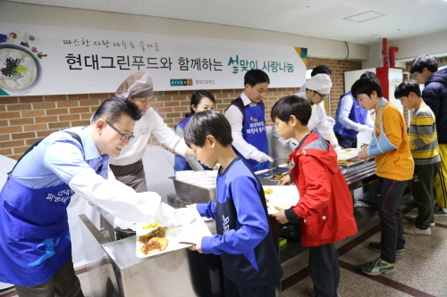 [뉴스핌=강필성 기자] 현대그린푸드는 설날을 맞아 용인시 처인구 소재 사회복지시설인 선한사마리아원 원생 50여 명에게 ‘사랑의 떡국’을 제공했다고 16일 밝혔다.