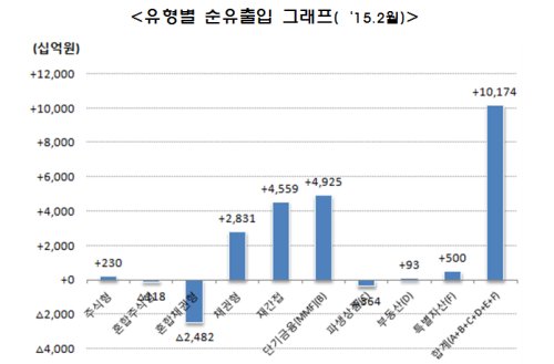 5일 금융투자협회가 발표한 ‘2월 국내 펀드시장동향 분석’에 따르면 지난달 말 기준 MMF 순자산은 전월말 대비 5조1000억원 증가한 100조8000억원으로 조사됐다.