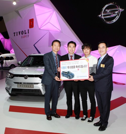 쌍용차는 지난 4일 ‘2015 서울모터쇼’ 쌍용차 전시관에서 송영한 국내영업본부장 등과 수상자들이 참석한 가운데 1등 경품을 전달했다.