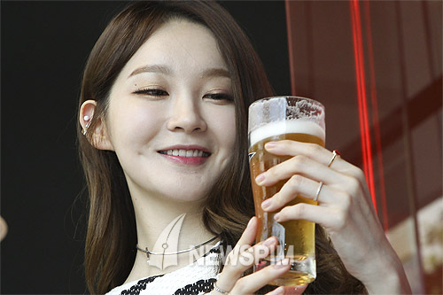 [뉴스핌 포토] 강민경, 아사히 거품이 장난 아닌데~