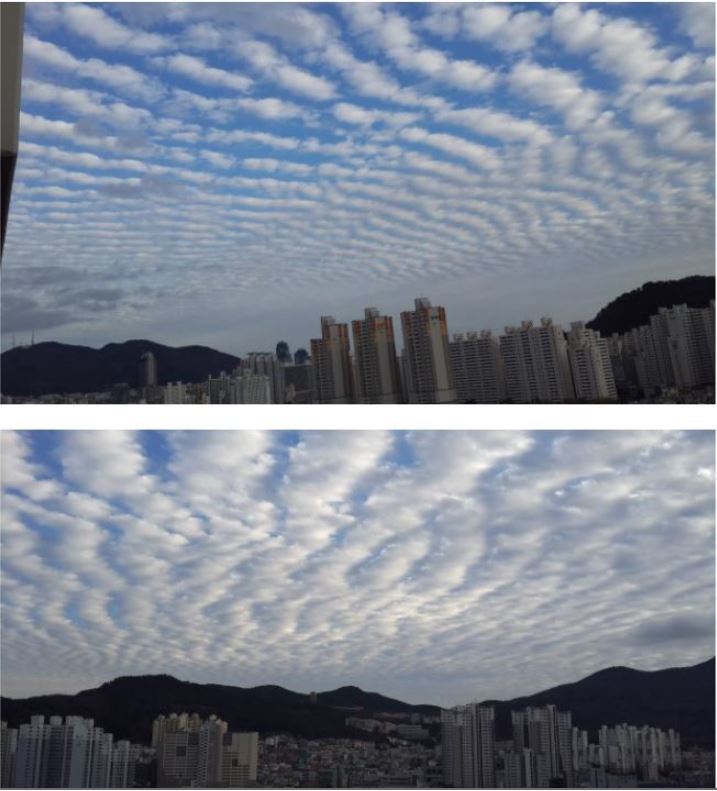 한 누리꾼은 부산에서 거주 중이라고 밝히며 지진운으로 추측되는 구름이 찍힌 사진을 올리며 자신이 지진운을 포착했다고 적었다.