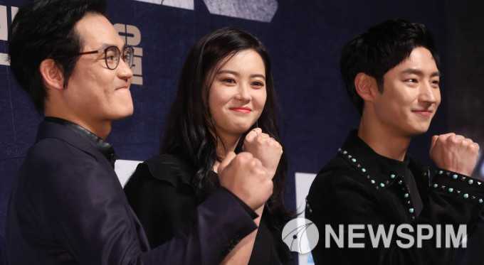 [뉴스핌=김학선 기자] 배우 김성균, 고아라, 이제훈이 4일 오전 서울 압구정CGV에서 열린 영화 '탐정 홍길동: 사라진 마을' 제작보고회에서 포즈를 취하고 있다.