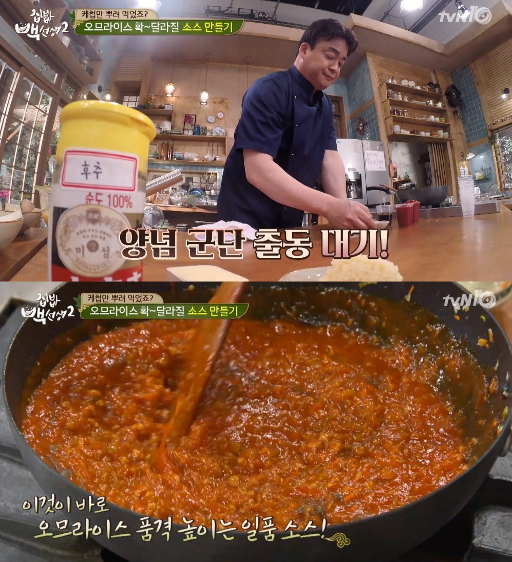 | 백종원이 24일 방송한 '집밥 백선생2'에서 만능 오므라이스 소스 레시피를 공개한 장면 <사진=tvN '집밥 백선생 시즌2' 캡처> |