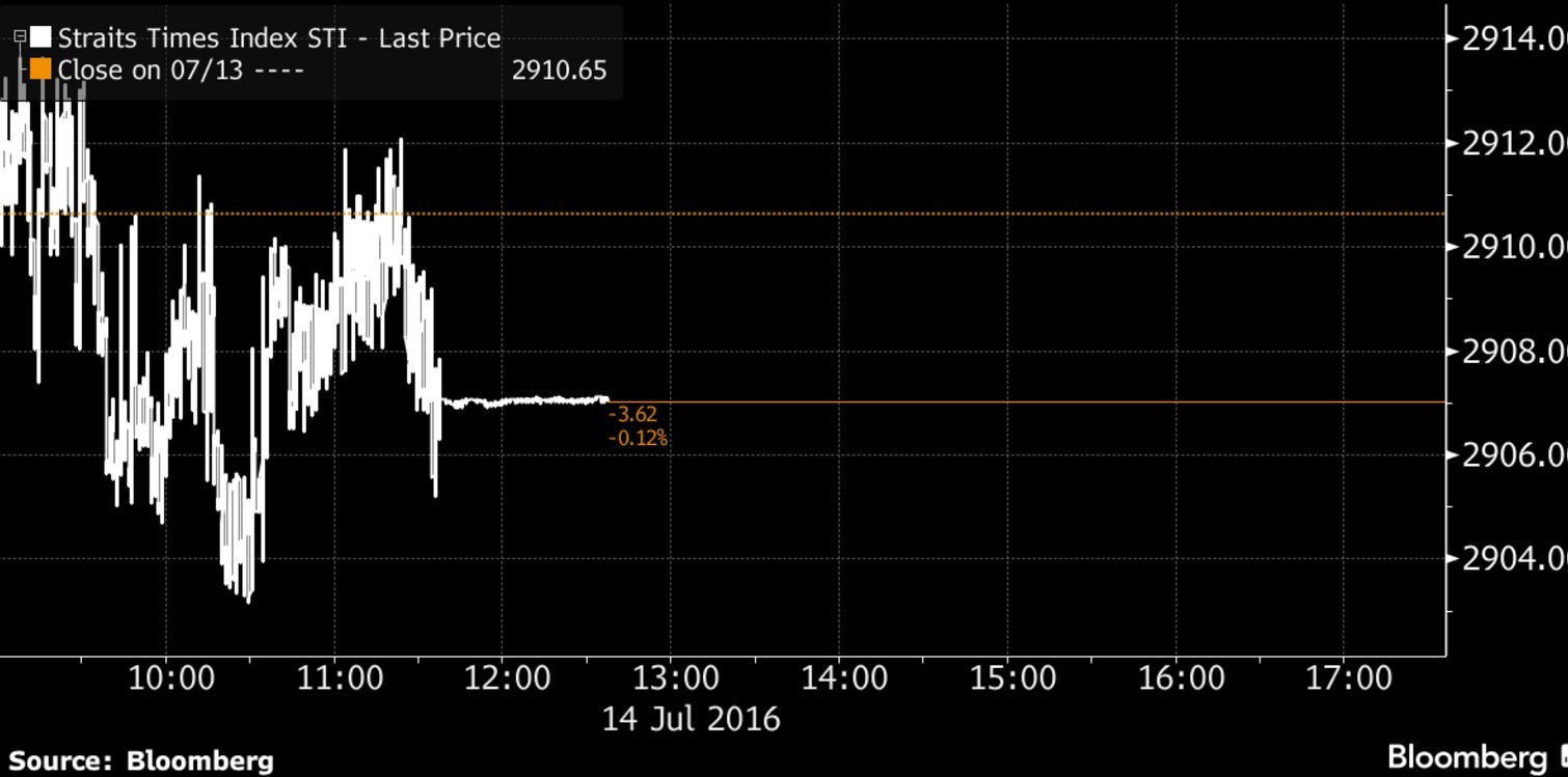 | 14일 스트레이츠타임스지수(STI) 추이 <자료=블룸버그통신> |