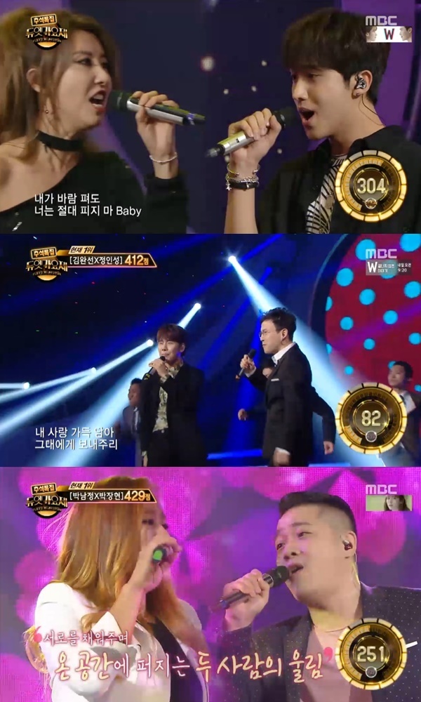 | 김완선X크나큰 정인성, 박남정X브로맨스 박장현, 신효범X길구봉구 봉구가 '듀엣가요제'에서 완벽한 듀엣 무대를 꾸몄다. <사진=MBC '듀엣가요제' 방송 캡처> |