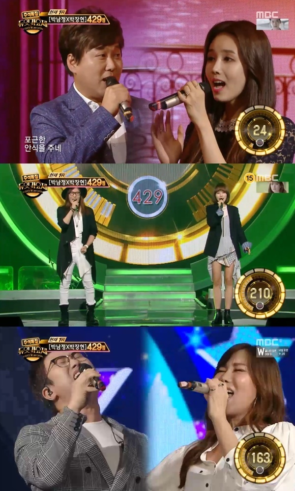 [뉴스핌=정상호 기자] 신인의 패기와 선배의 내공이 어우러진 무대였다. 박남정과 브로맨스 박장현이 ‘듀엣가요제’ 추석특집 왕좌 자리에 올랐다.