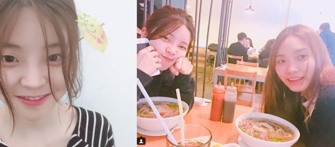 혜이니는 최근 인스타그램에 이진아와 함께 식당에서 찍은 사진을 올리며 "국수 잘먹었습니다아 근데 나 또 배고파요"라는 글을 적었다.