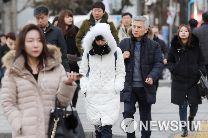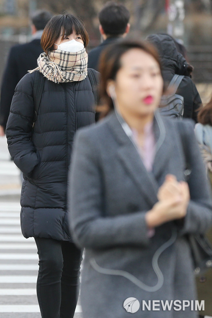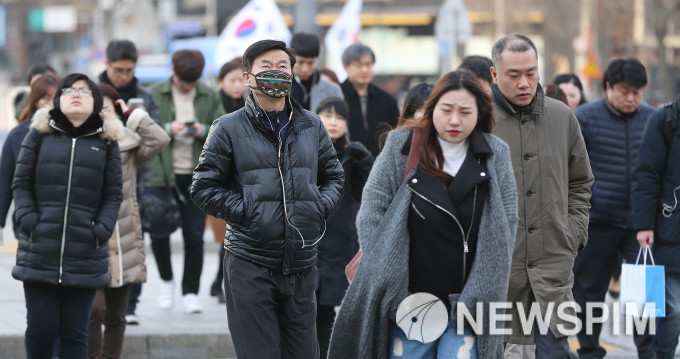 [뉴스핌=이형석 기자] 서울의 최저 온도가 영하 2도까지 떨어지며 꽃샘추위가 찾아온 2일 오전 서울 종로구 광화문 네거리에서 시민들이 옷을 두텁게 입고 출근길을 서두르고 있다.