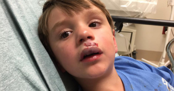 부상은 심했습니다. 바로 응급실로 옮겨진 해리스 아들은 총 30바늘이나 꿰매야했습니다.